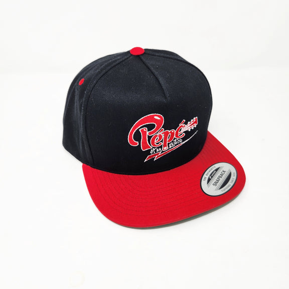 Black and red cap with Pépé et sa guitare logo