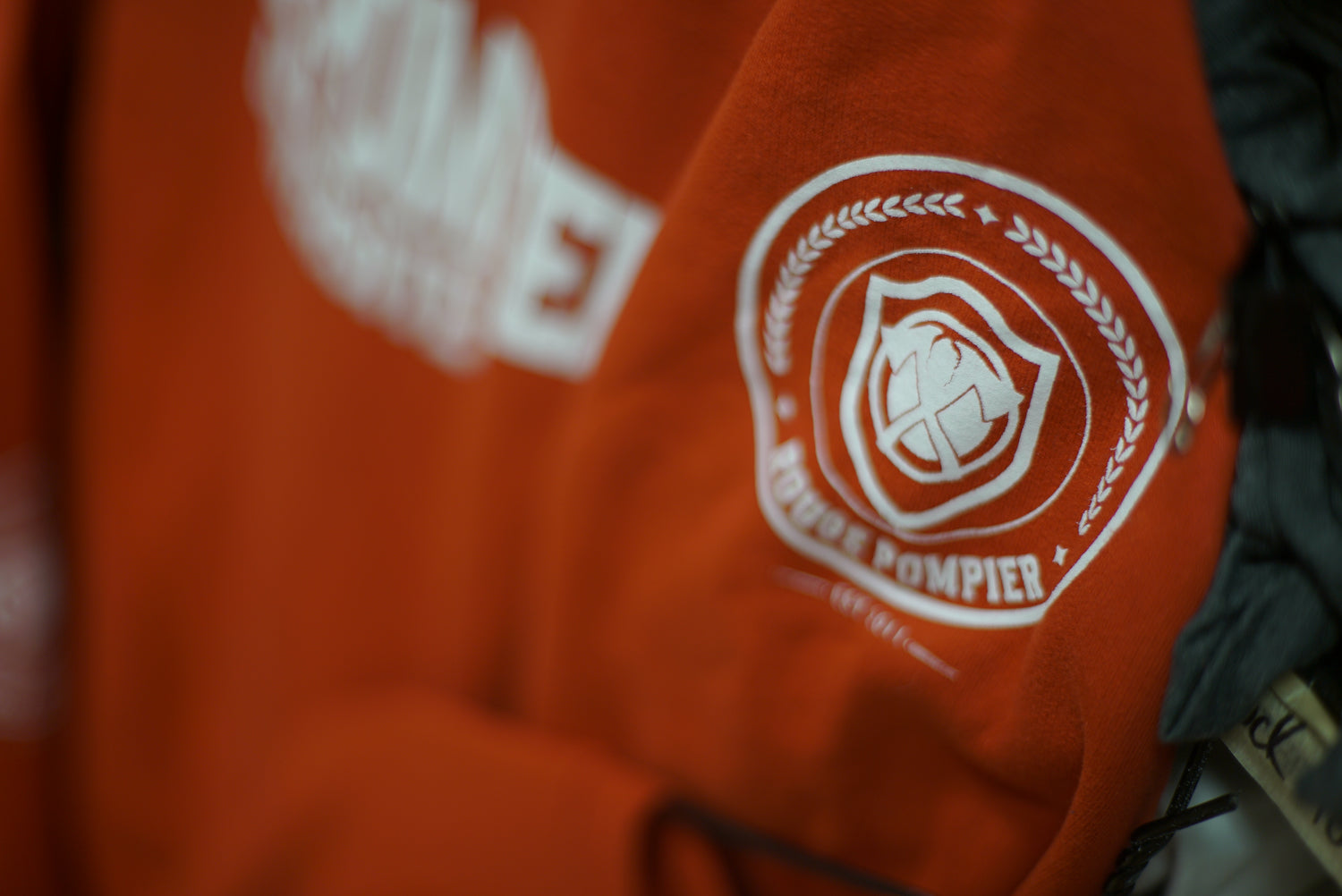 Vintage "axes" logo in gold on the front, Michael Caine album artwork on the back.