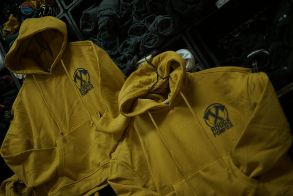 Vintage "axes" logo in gold on the front, Michael Caine album artwork on the back.