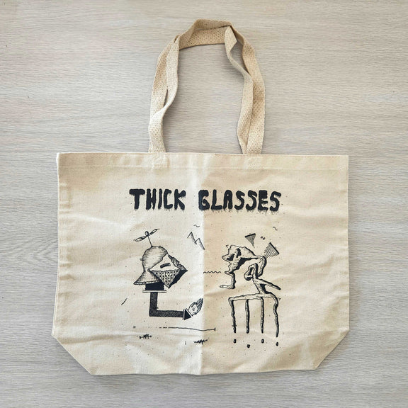 Tote bag with Thick Glasses' "Abstract Glasses" design.